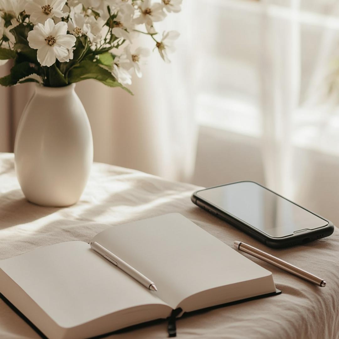 We're here to help people live with more purpose, clarity, and confidence by creating beautiful digital tools — like journals, planners, organizers, even t-shirts and phone cases — that make mindful planning and intentional living feel inspiring and easy.