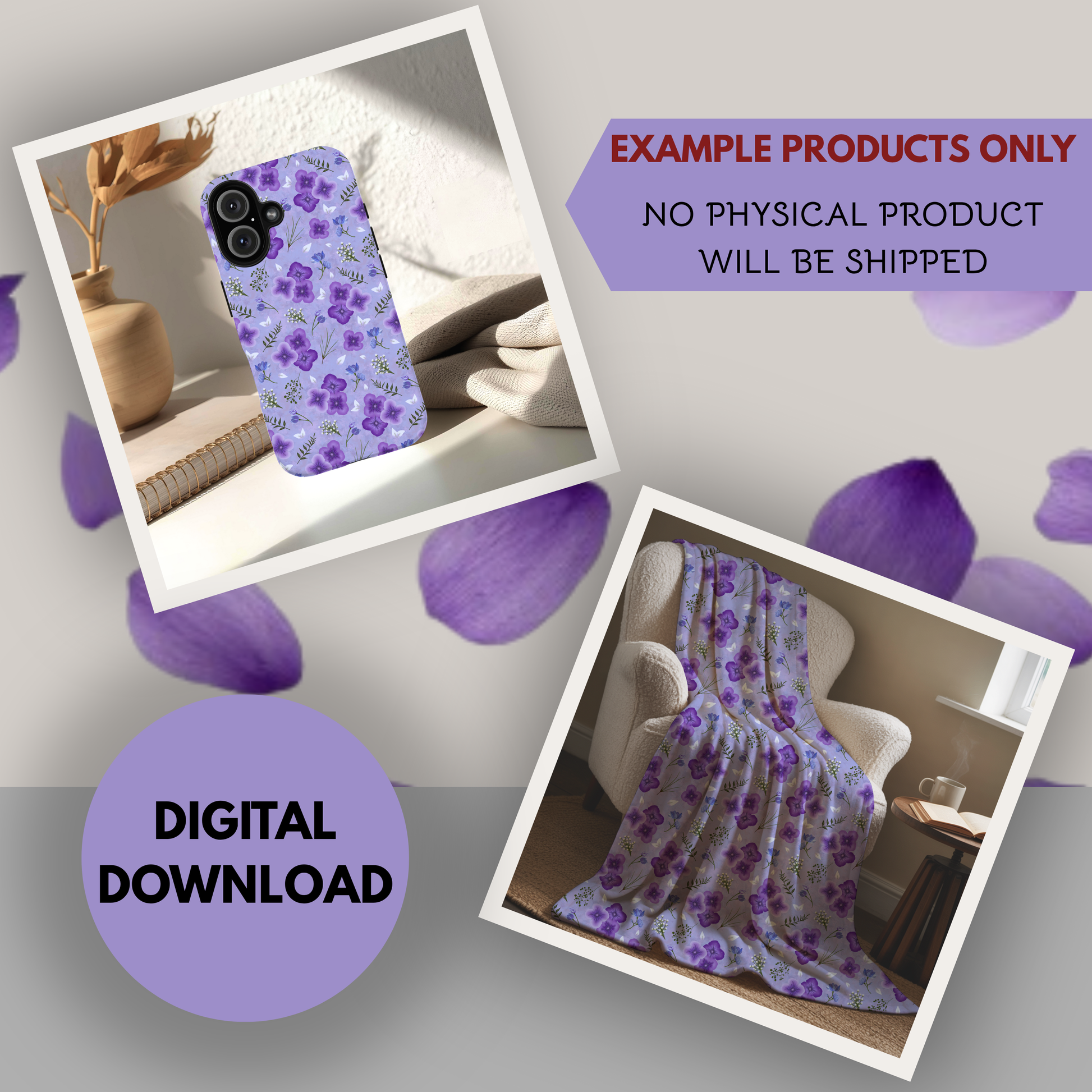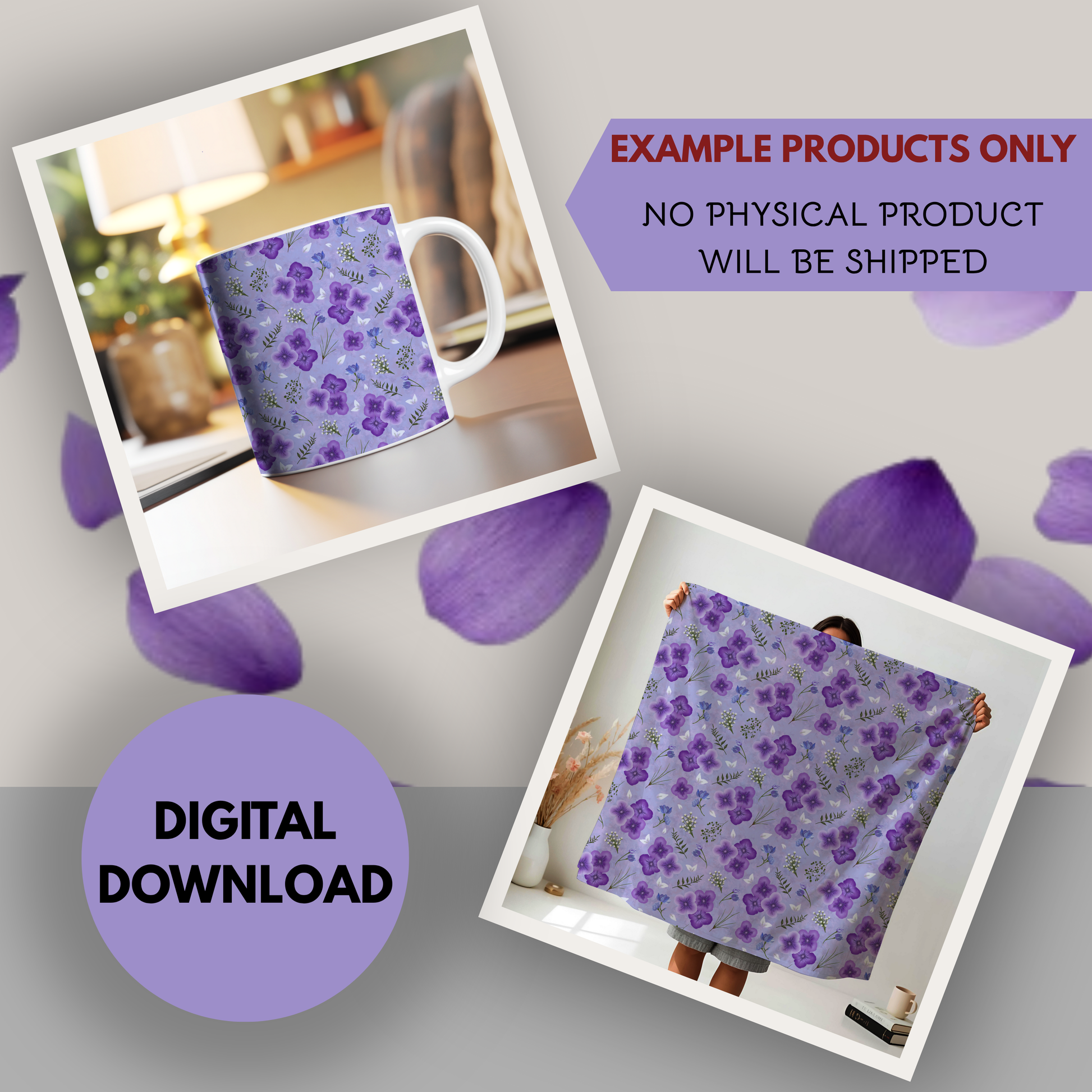 Amethyst Meadows purple background Seamless Hand Drawn Digital Pattern | 300 DPI PNG | Instant Download