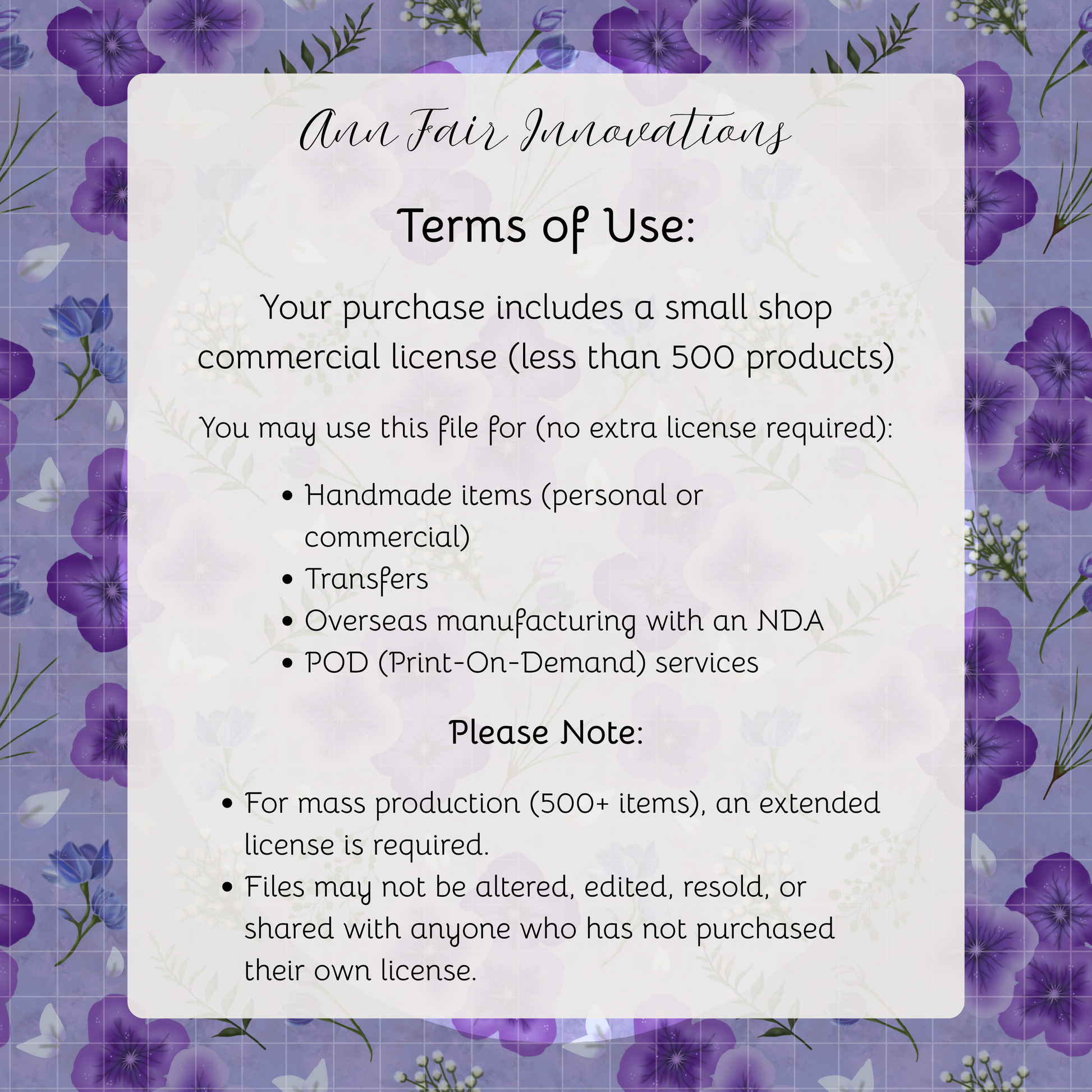 - ✅ Use for handmade products, transfers, POD (print-on-demand), and overseas manufacturing (with NDA)