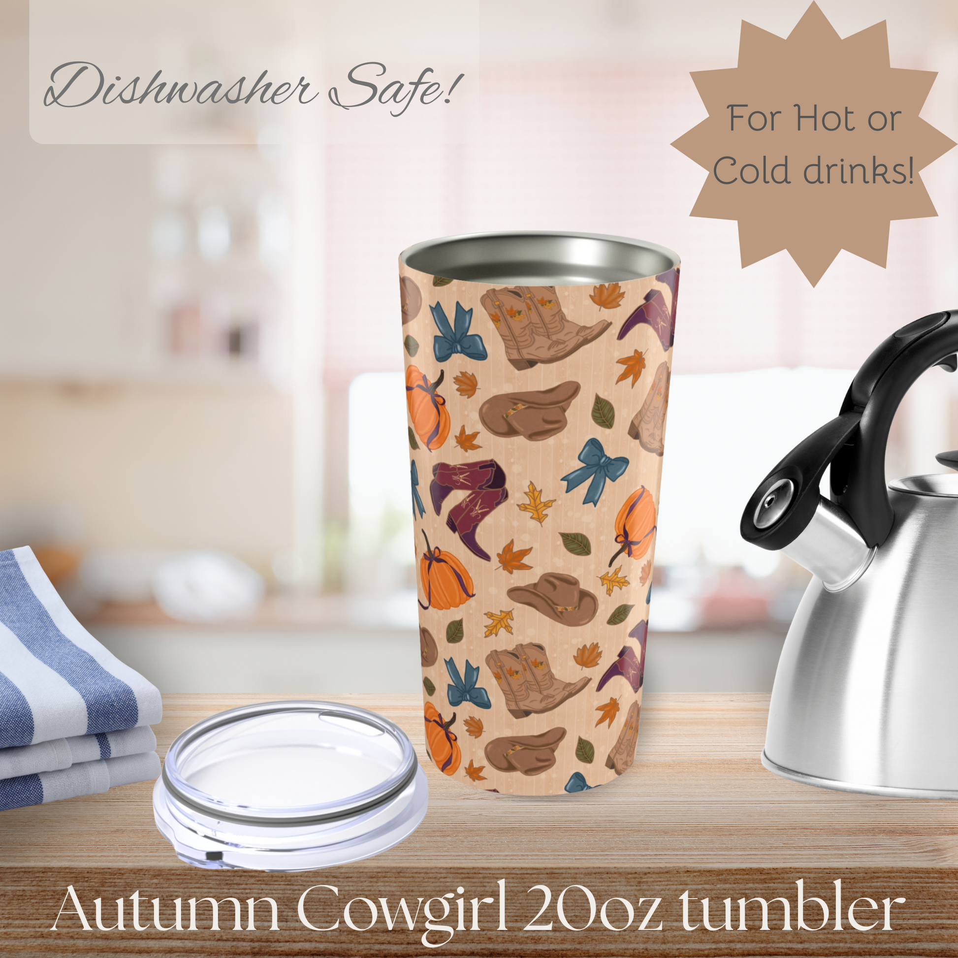 Autumn Cowgirl Tumbler 20oz - Fall Coffee Mug, Seasonal Travel Tumbler, Thanksgiving Gift, Pumpkin Spice, Cozy Vibes