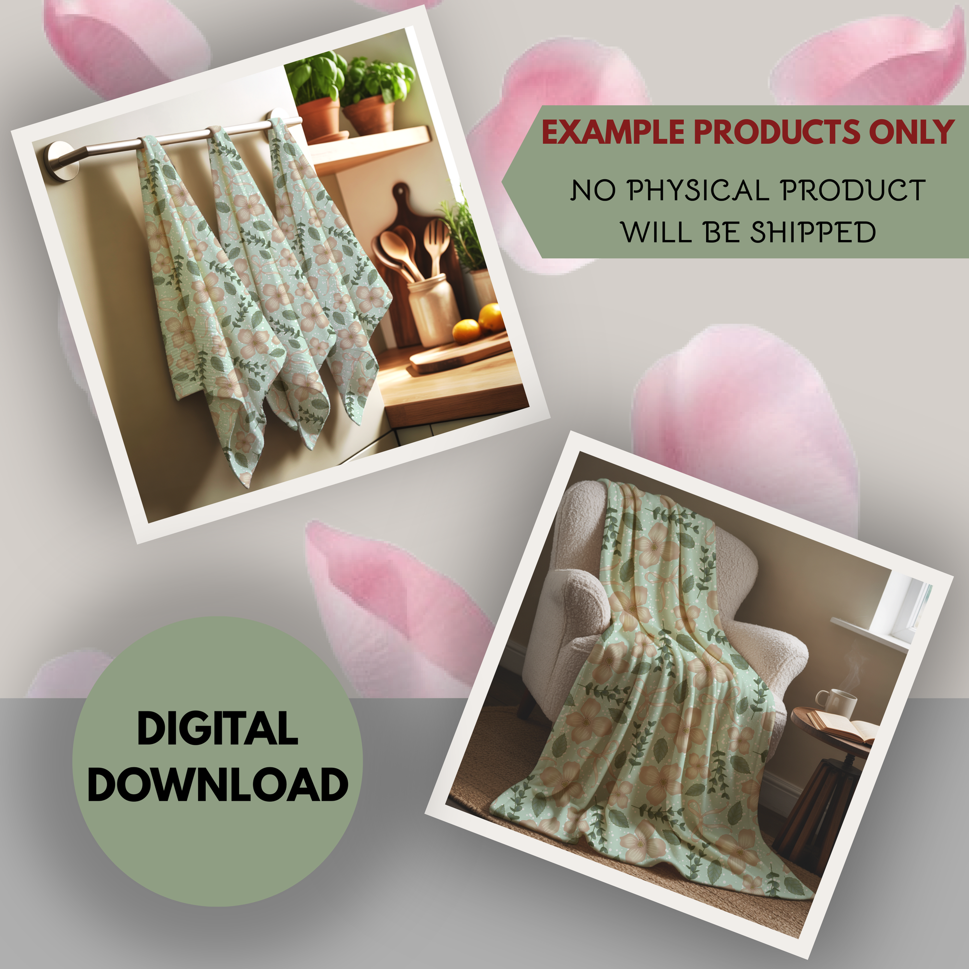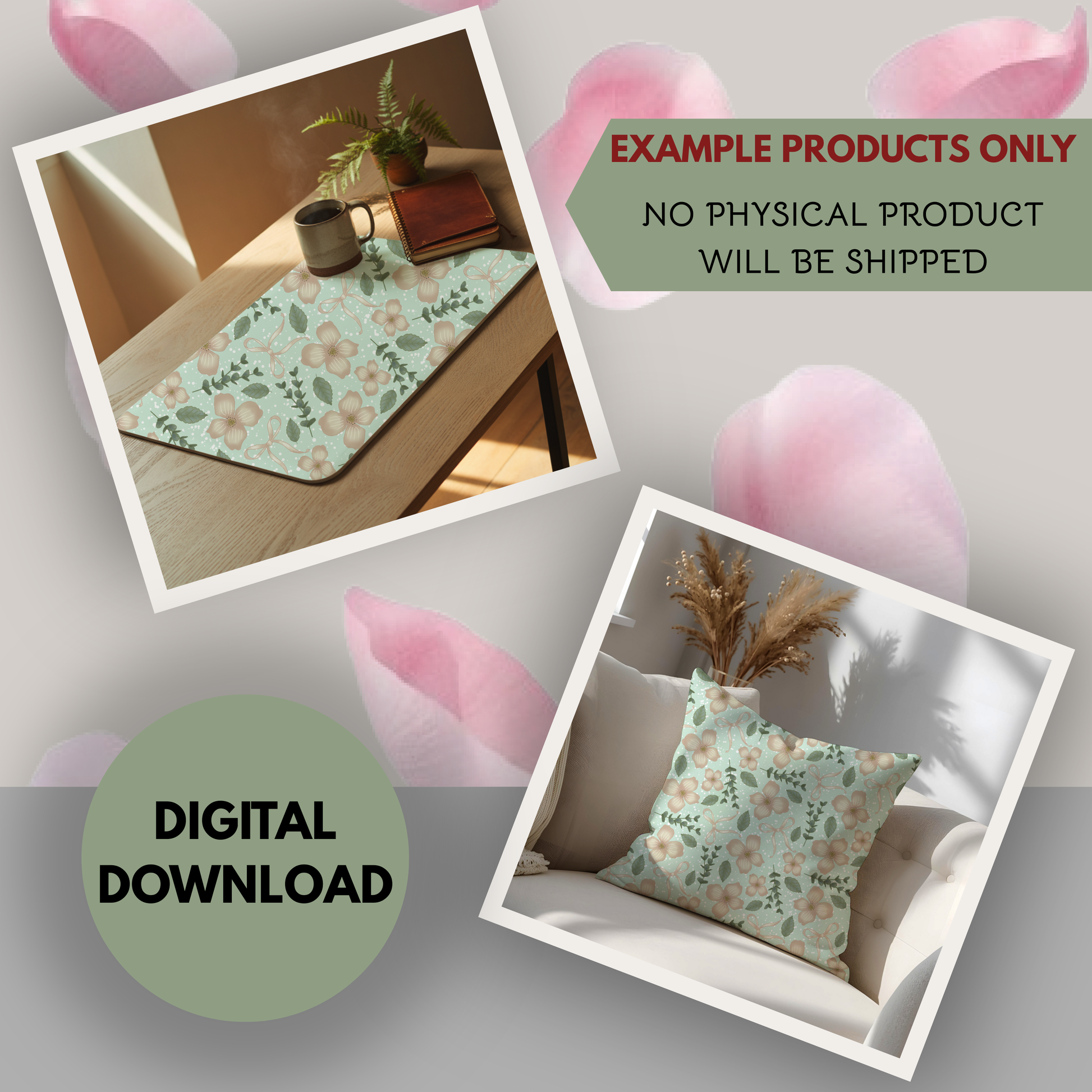 Blush Petal Garden Seamless Hand Drawn Digital Pattern | 300 DPI PNG | Instant Download
