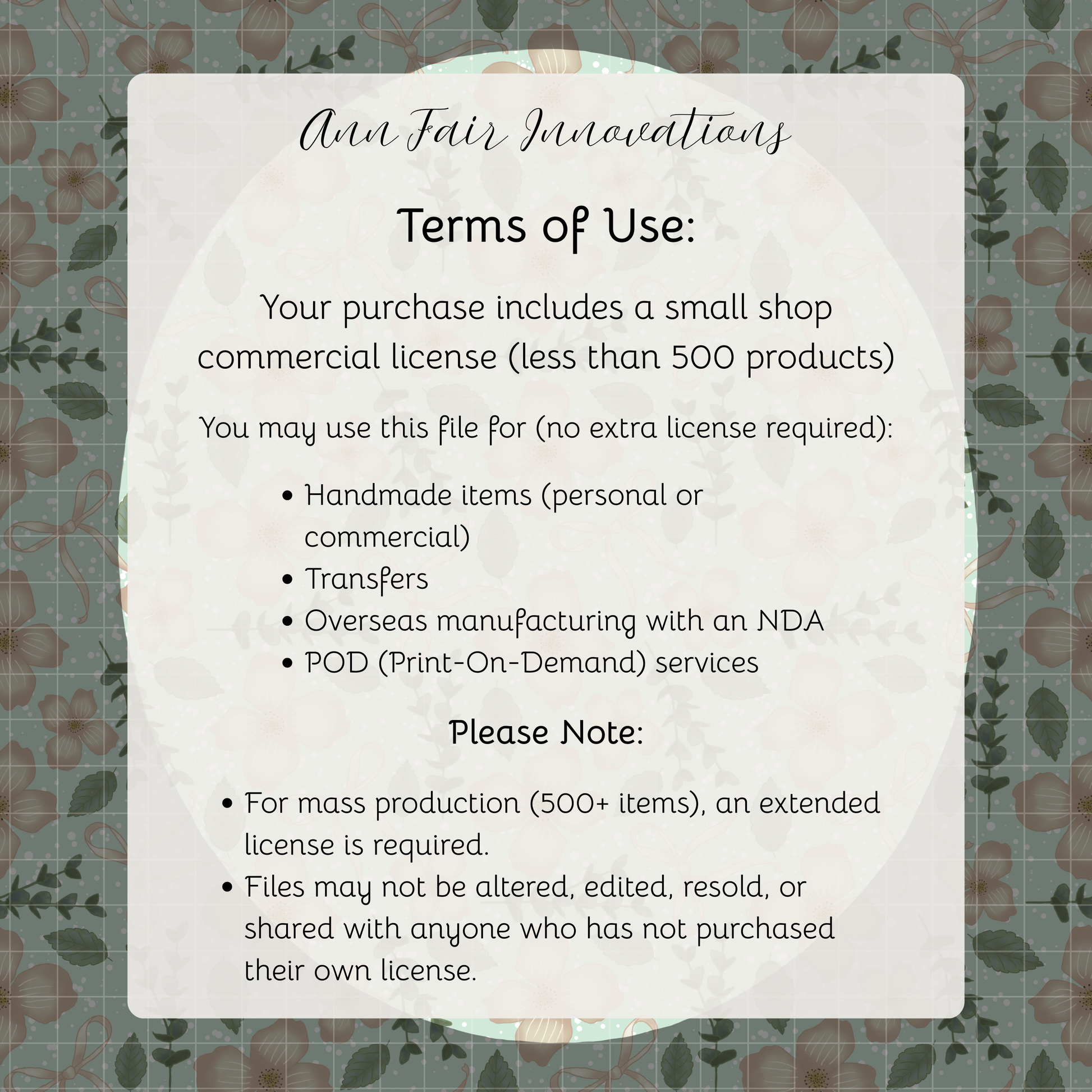 - ✅ Use for handmade products, transfers, POD (print-on-demand), and overseas manufacturing (with NDA)