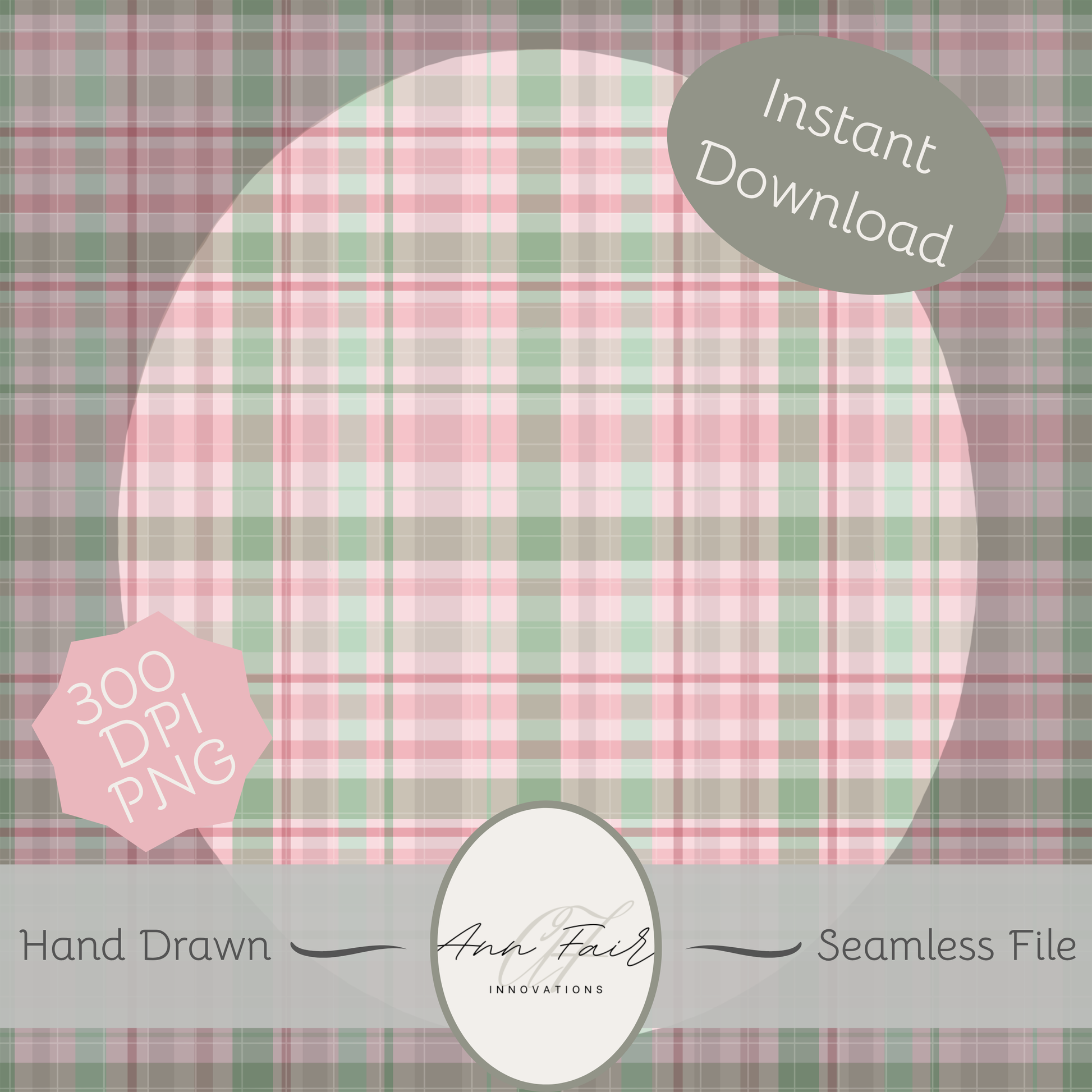 Coquette Plaid Seamless Hand Drawn Digital Pattern | 300 DPI PNG | Instant Download