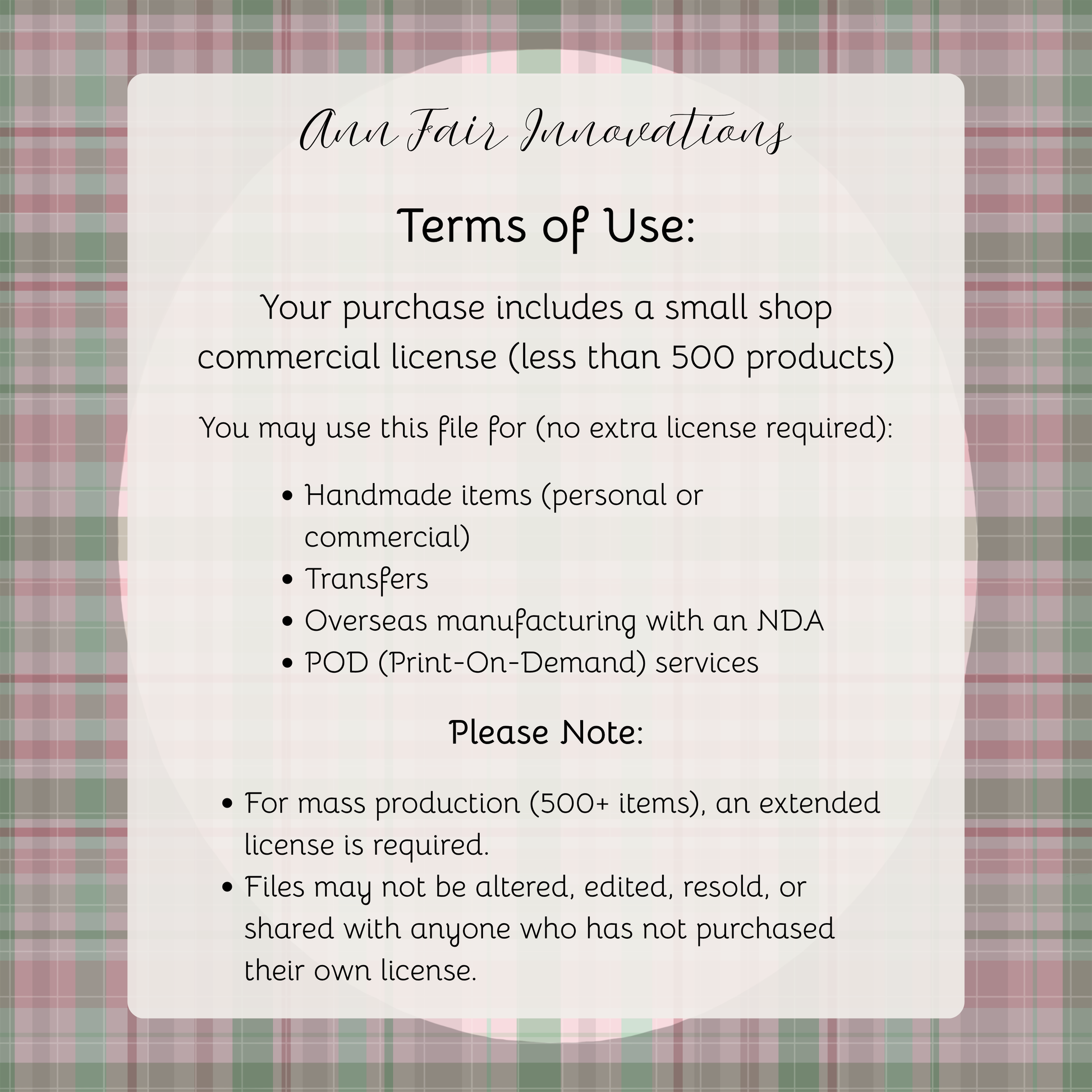 - ✅ Use for handmade products, transfers, POD (print-on-demand), and overseas manufacturing (with NDA)