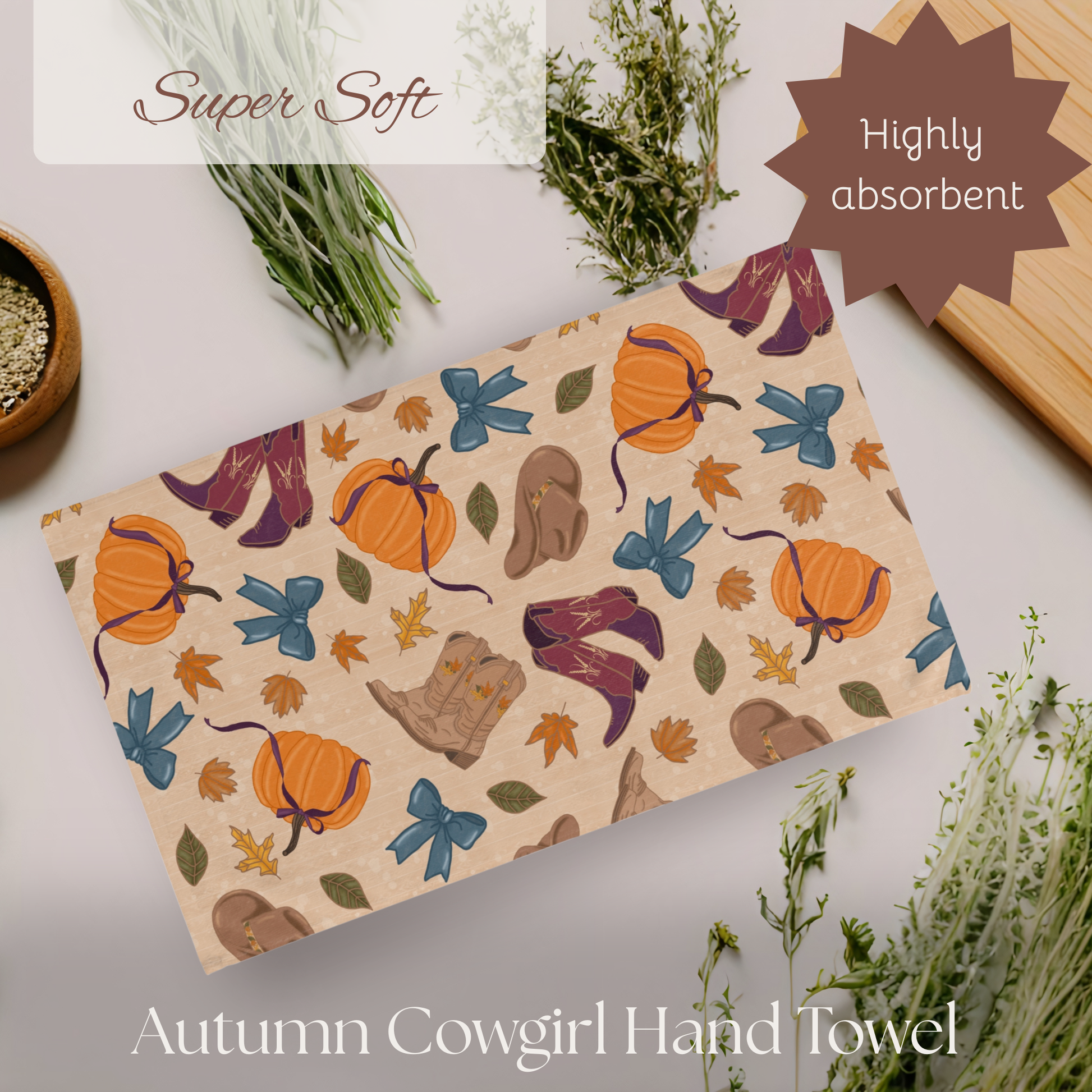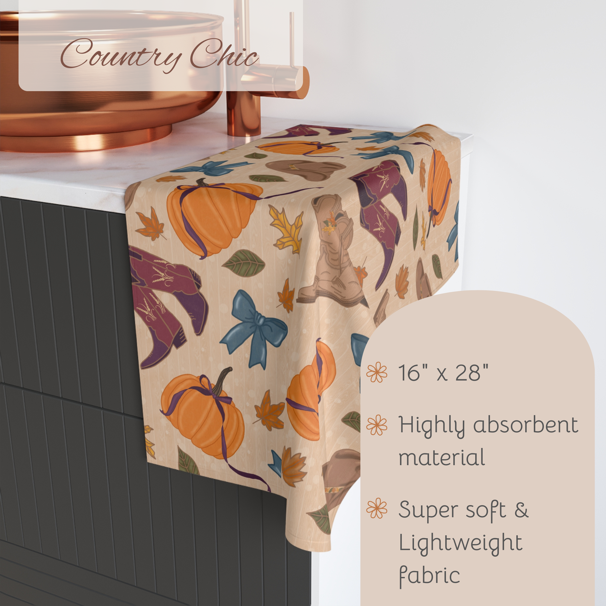 Fall-Themed Hand Towel, Autumn Decor, Kitchen Towel, Seasonal Gift, Pumpkin and Boots Design, Thanksgiving, Home decor