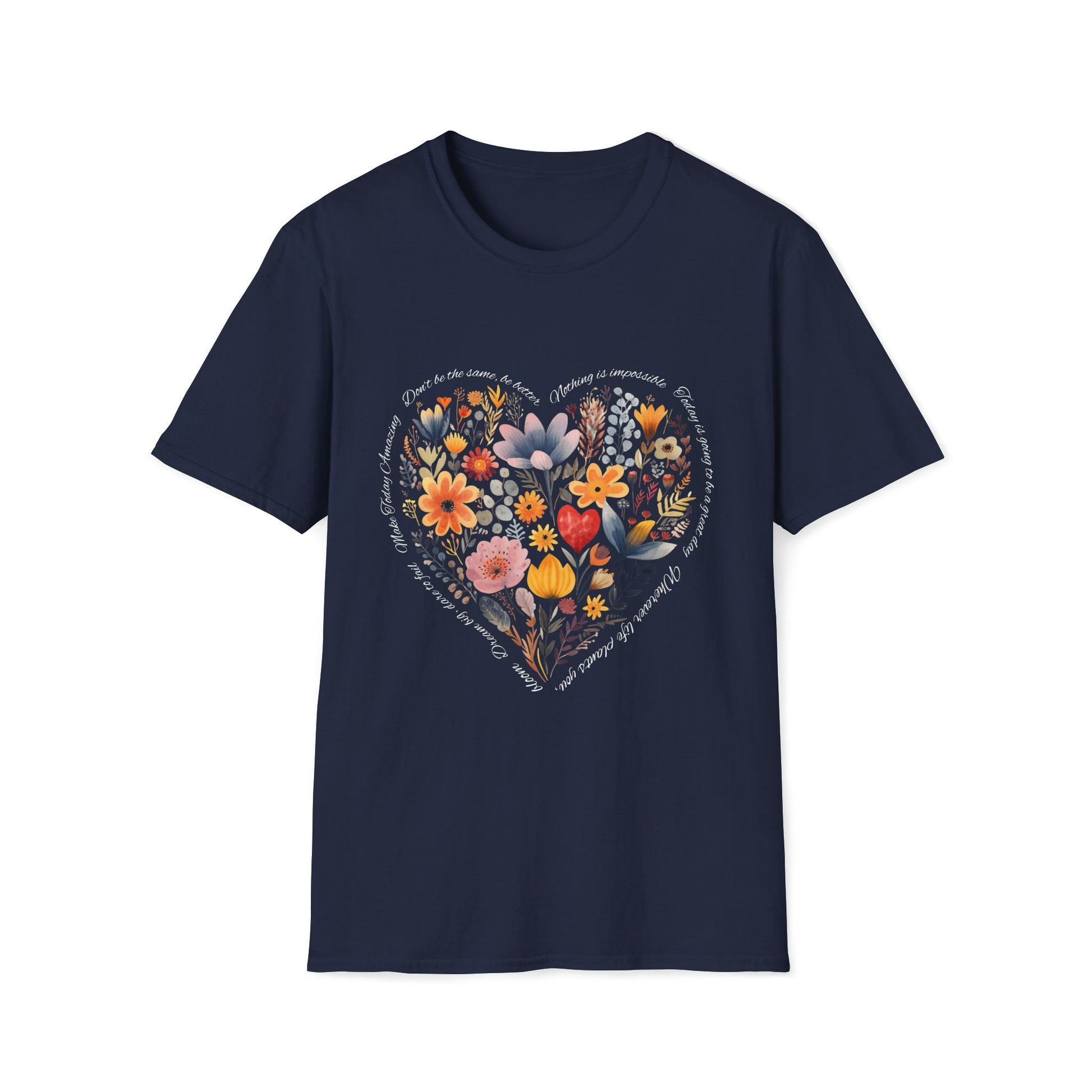 Introducing our Unisex Soft style T-Shirt, a blend of comfort and style perfect for any occasion. This shirt features a beautiful floral design that radiates warmth and positivity, making it an ideal addition to your casual wardrobe. Whether you're dressing up for a family gathering or enjoying a cozy day at home, this tee will elevate your look with its classic fit and versatile design. It’s perfect for anyone who appreciates high-quality apparel, from fashion enthusiasts to eco-conscious shoppers.