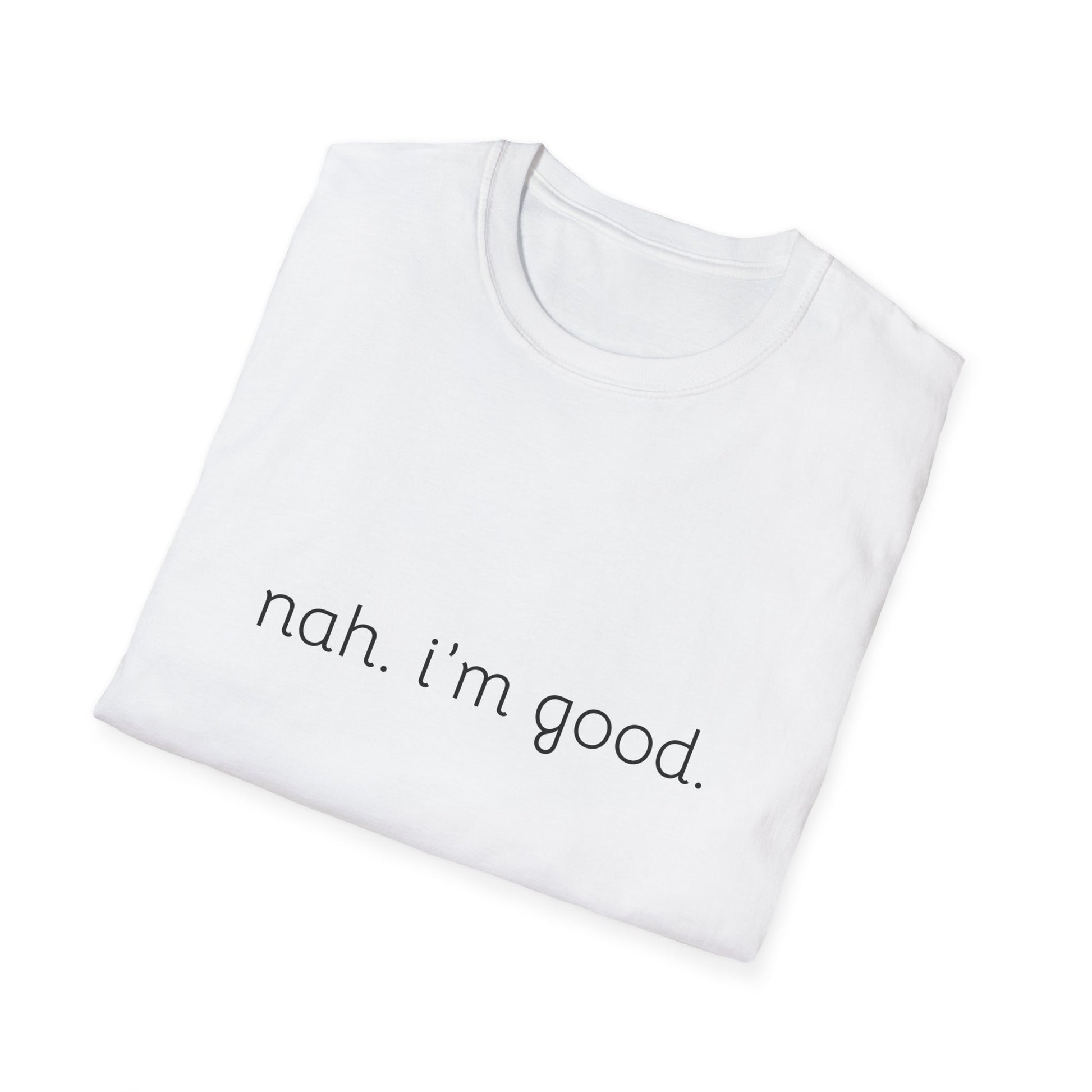 Humorous Unisex Soft style T-Shirt - "Nah. I'm Good." Casual Statement Tee