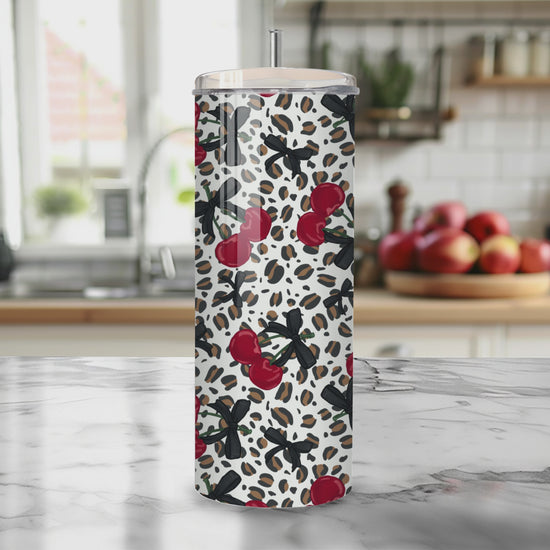Leopards and Cherries Seamless PNG 20oz Skinny Tumbler Wrap | Sublimation 300 DPI Straight Tumbler Wrap | PNG Digital Wrap Digital Download