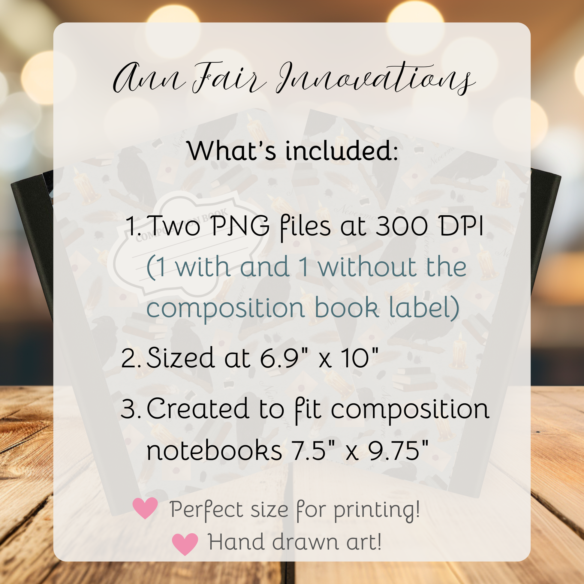 Nevermore in Blue Composition Notebook Cover | Digital Download PNG | Back to School, Journaling, DIY Custom Notebook, Sticker Paper Cover