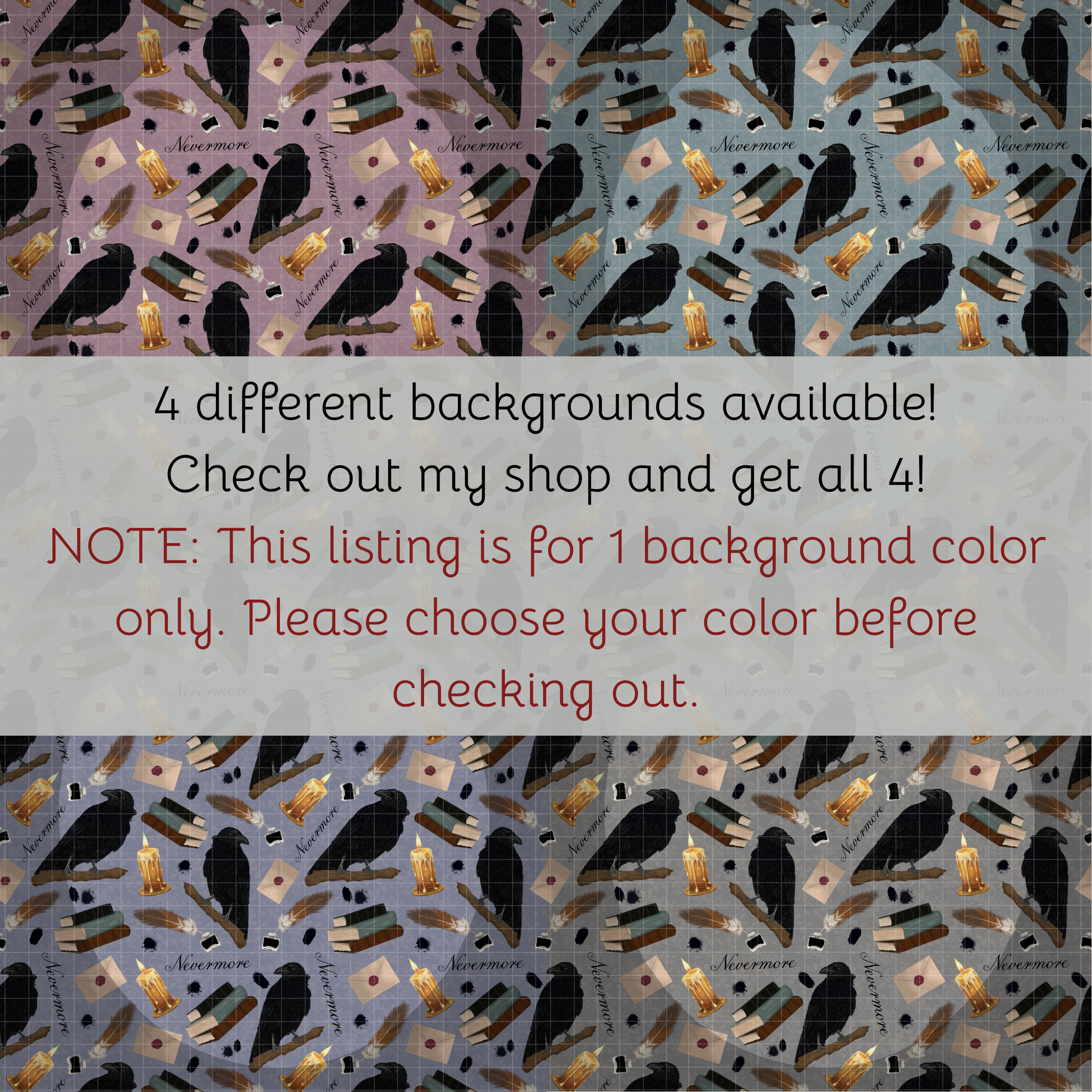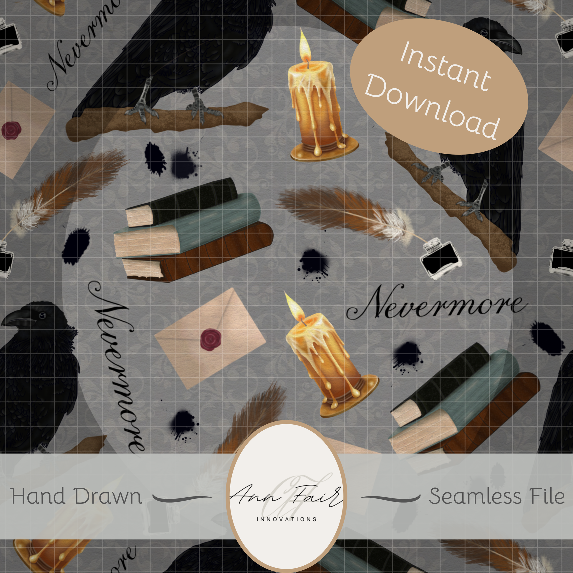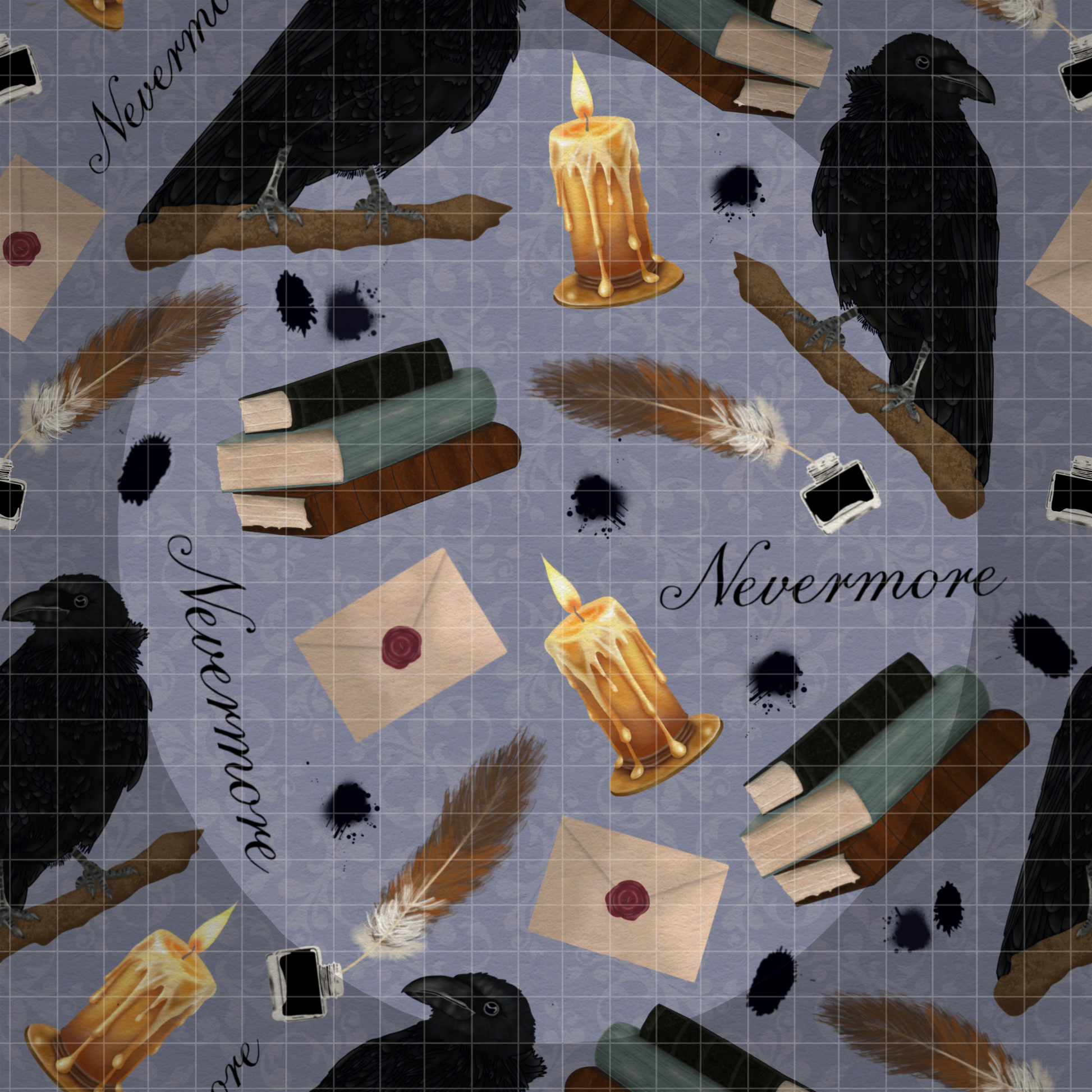 Nevermore Seamless Hand Drawn Digital Pattern | 300 DPI PNG | Instant Download |Edgar Allan Poe | The Raven