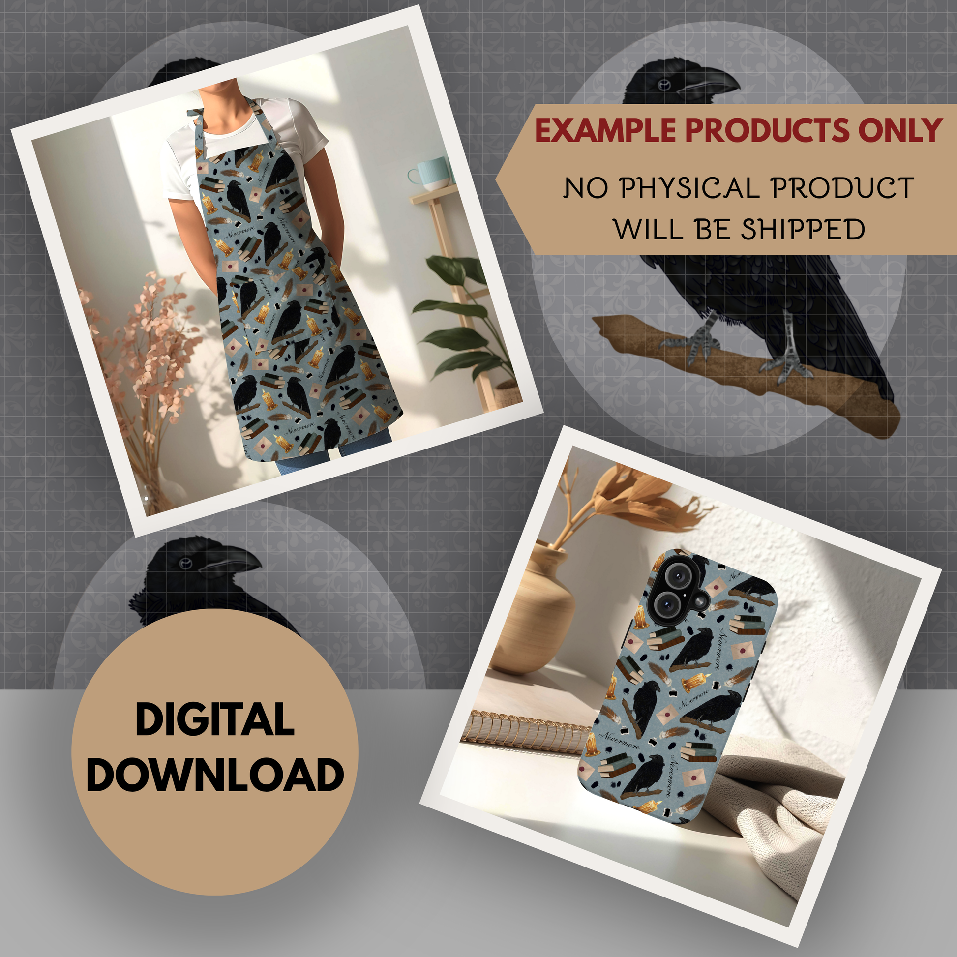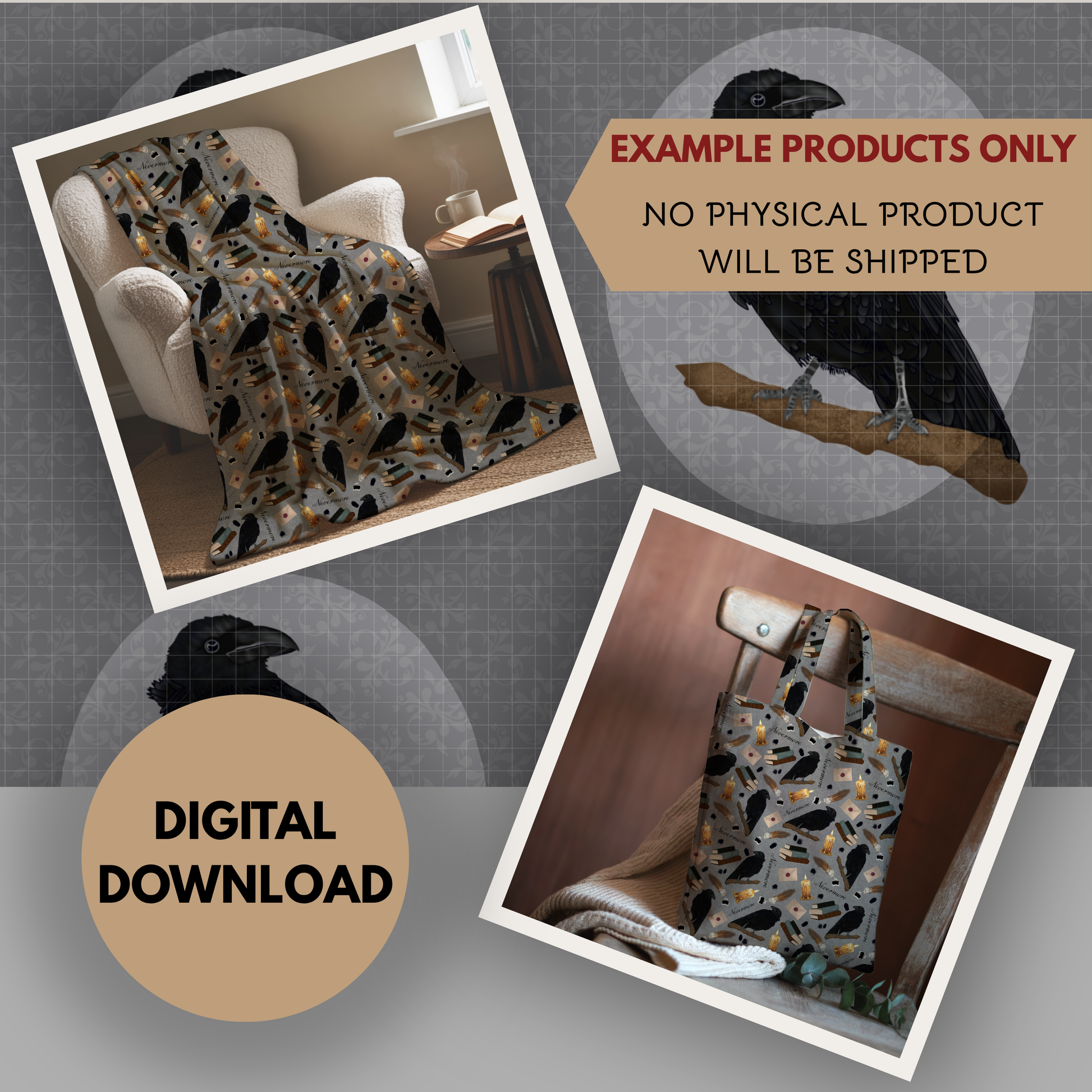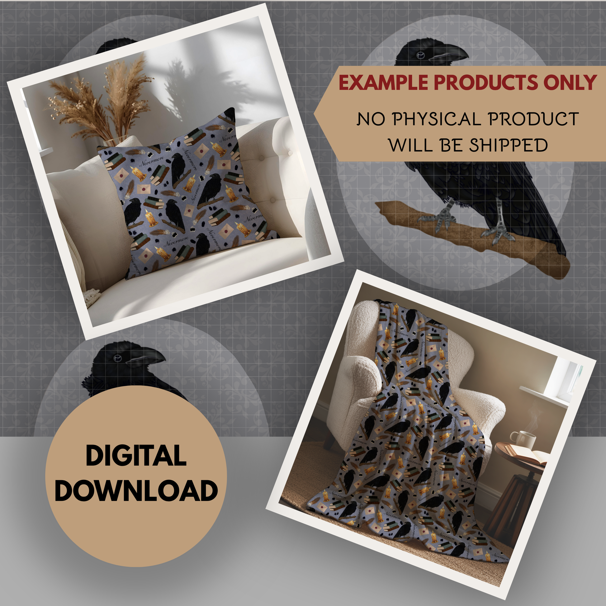 Nevermore Seamless Hand Drawn Digital Pattern | 300 DPI PNG | Instant Download |Edgar Allan Poe | The Raven