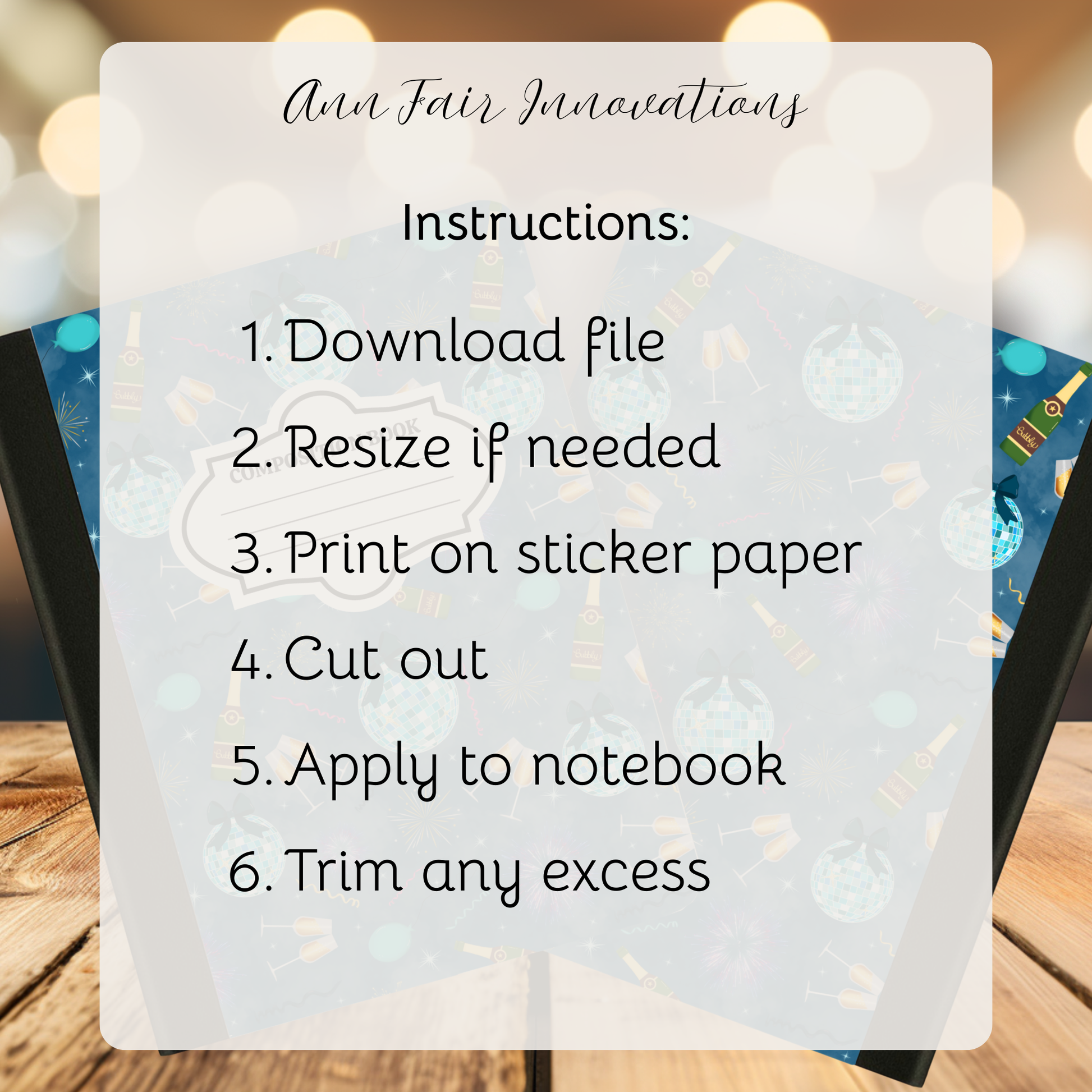 New Year's Eve Party Composition Notebook Cover | Digital Download PNG | Journaling, DIY Custom Notebook, Sticker Paper Cover