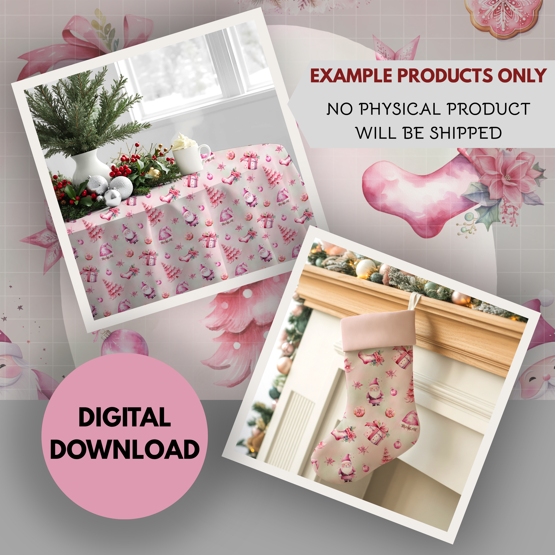 Pink Christmas Seamless Hand Drawn Digital Pattern | 300 DPI PNG | Instant Download