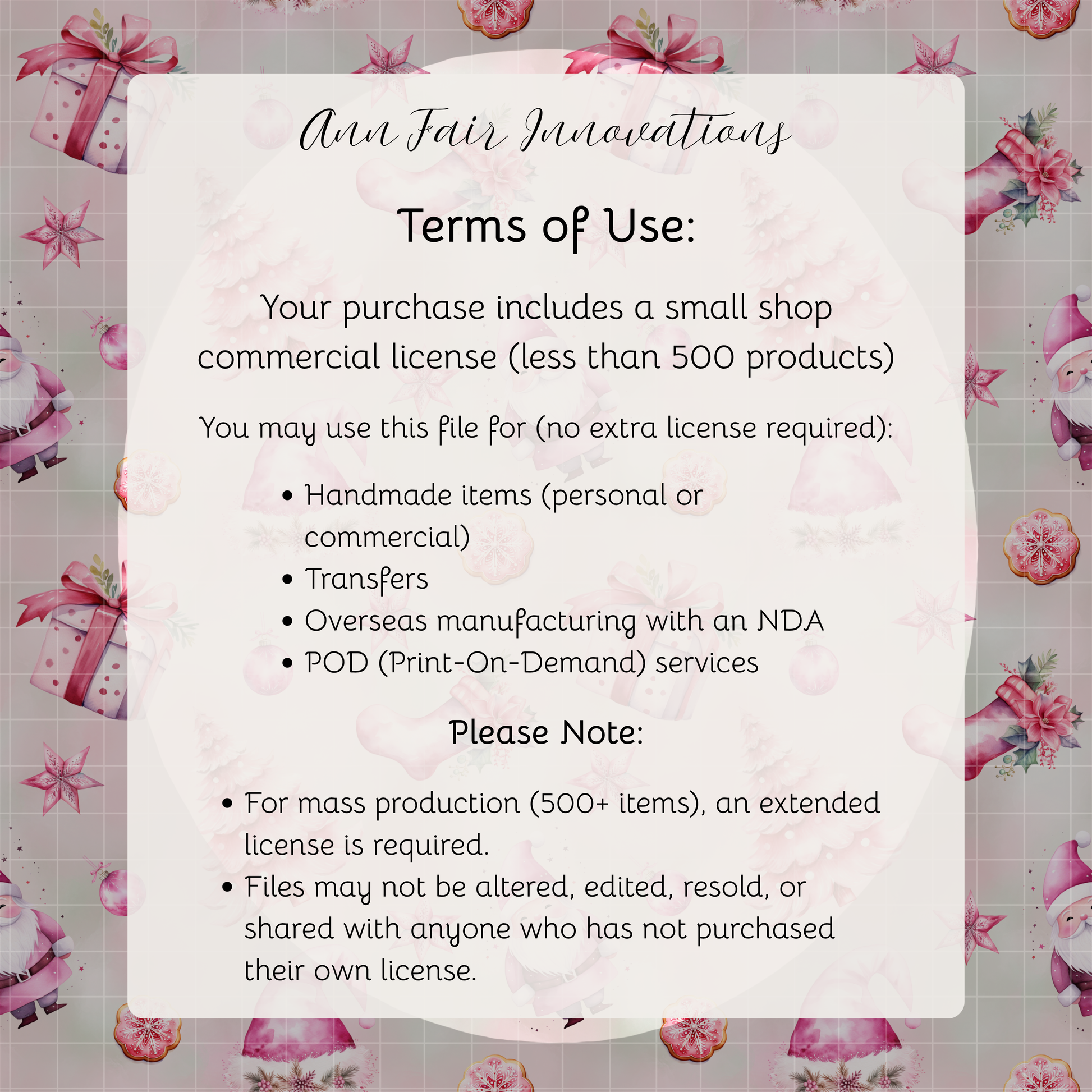 - ✅ Use for handmade products, transfers, POD (print-on-demand), and overseas manufacturing (with NDA)