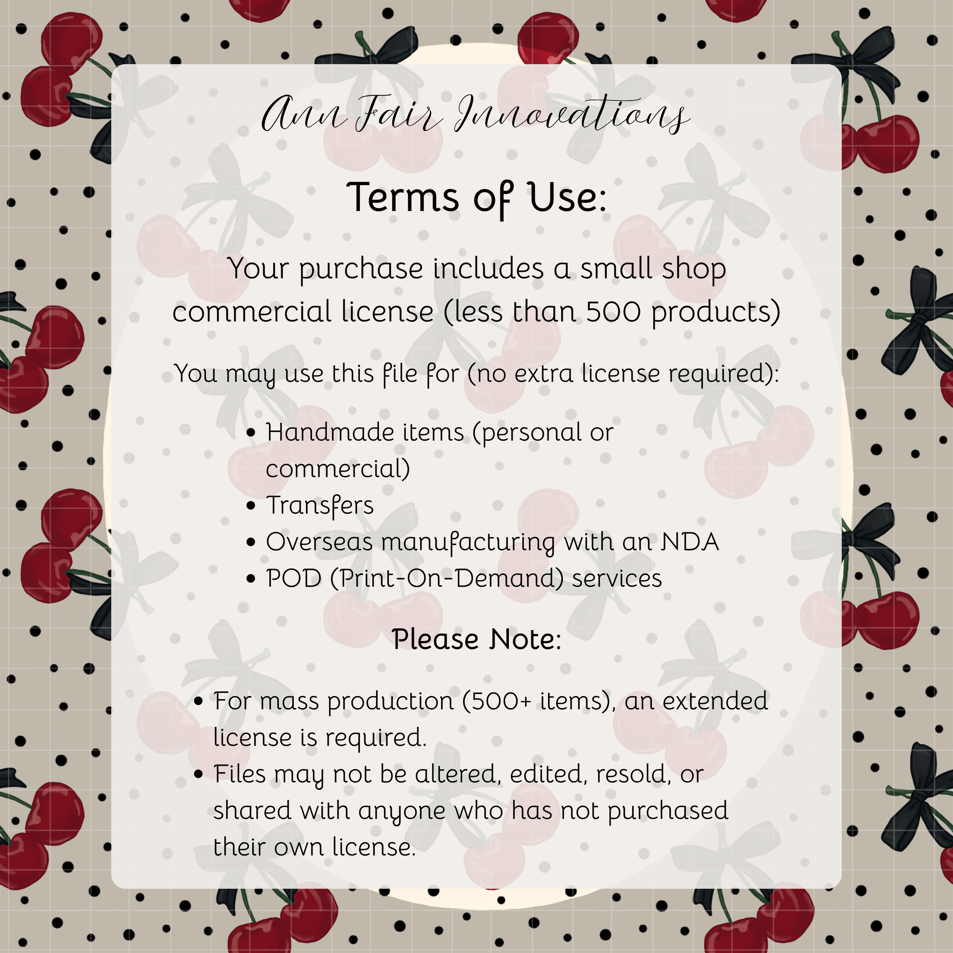 - ✅ Use for handmade products, transfers, POD (print-on-demand), and overseas manufacturing (with NDA)