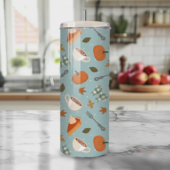 Pumpkin Pie and Coffee Seamless PNG 20oz Skinny Tumbler Wrap | Sublimation 300 DPI Straight Tumbler Wrap | PNG Digital Wrap Digital Download