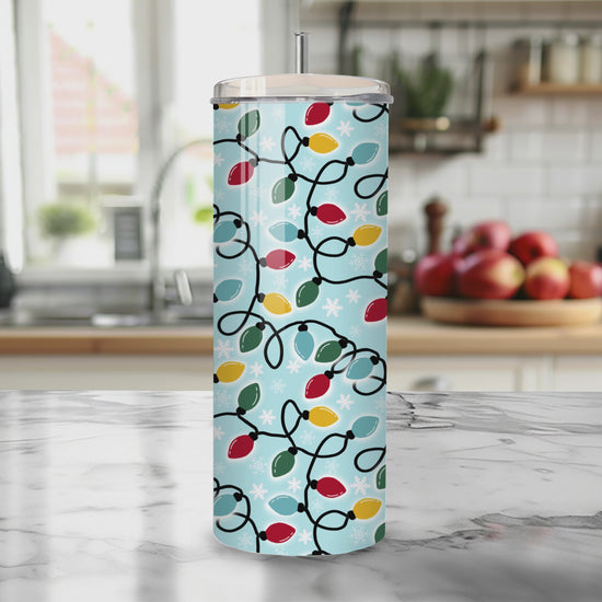 Retro Christmas Lights Seamless PNG 20oz Skinny Tumbler Wrap | Sublimation 300 DPI Straight Tumbler Wrap | PNG Digital Wrap Digital Download