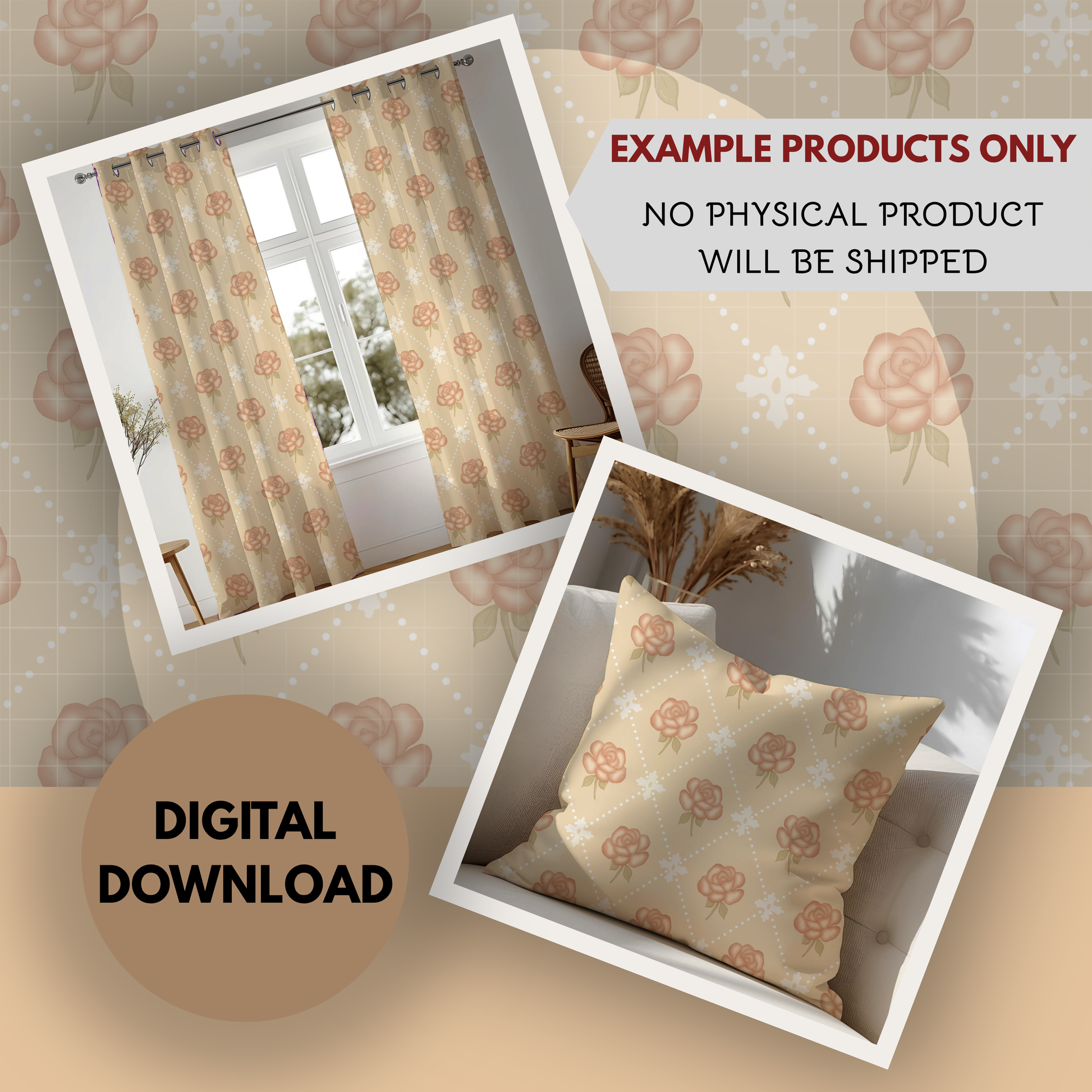 Rose Diamond Vintage Coquette Seamless Hand Drawn Digital Pattern | 300 DPI PNG | Instant Download