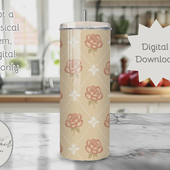 Rose Diamond Vintage Seamless PNG 20oz Skinny Tumbler Wrap | Sublimation 300 DPI Straight Tumbler Wrap | PNG Digital Wrap Digital Download