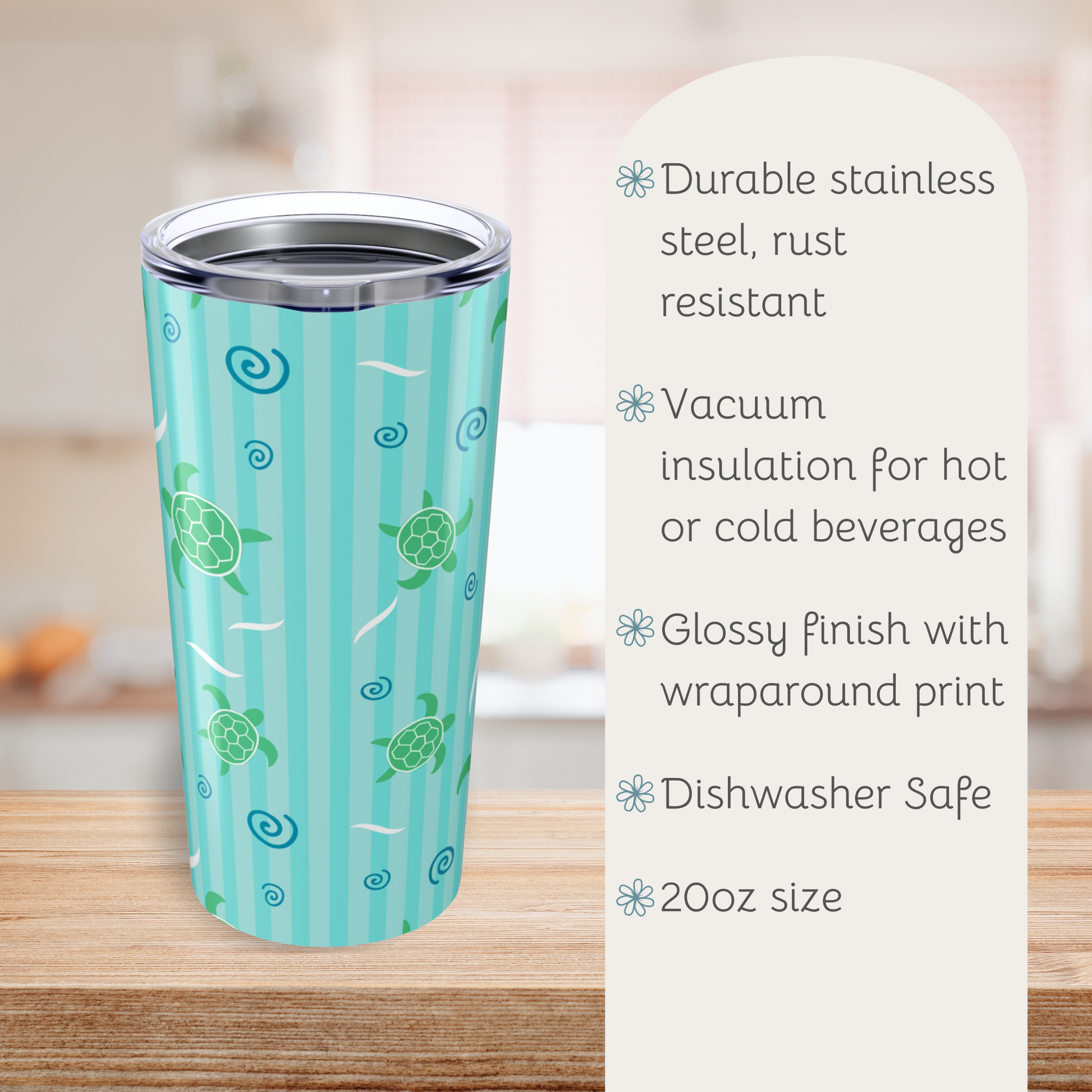 Sea Turtles Pattern Tumbler, Cute Travel Mug for Summer, Eco-Friendly Drinkware, Gift for Her, Refreshing Beverage Container