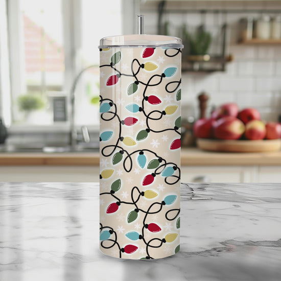 Vintage Christmas Lights Seamless PNG 20oz Skinny Tumbler Wrap | Sublimation 300 DPI Straight Tumbler Wrap | PNG Digital Wrap Digital Download