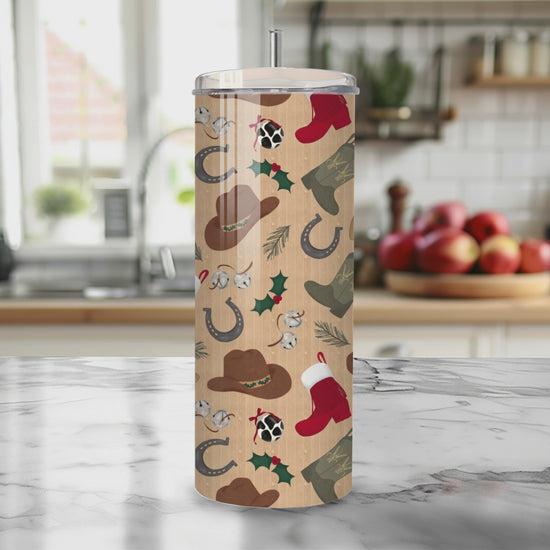 Western Christmas Seamless PNG 20oz Skinny Tumbler Wrap | Sublimation 300 DPI Straight Tumbler Wrap | PNG Digital Wrap Digital Download