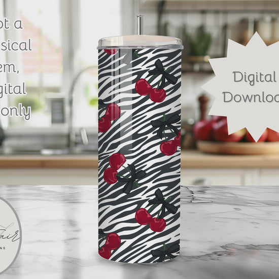 Elevate your sublimation projects with our Zebra Print and Cherries tumbler wrap—a seamless, high-resolution design made to give your creations a polished, professional finish. Designed for 20oz skinny straight sublimation tumblers, this 300 DPI PNG file ensures crisp and vibrant results every time.